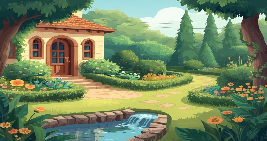 Suddenly, a huge walled house came into view in front of their eyes. As we