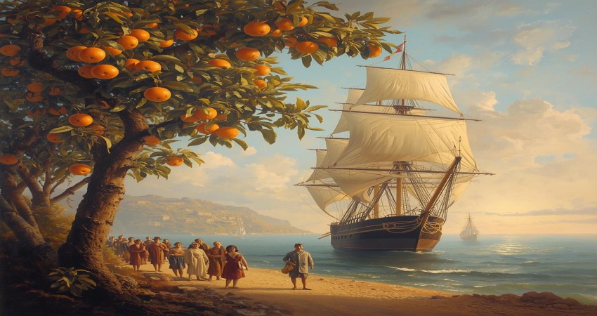 sailors bring sweet oranges from different parts of Europe, so people are
